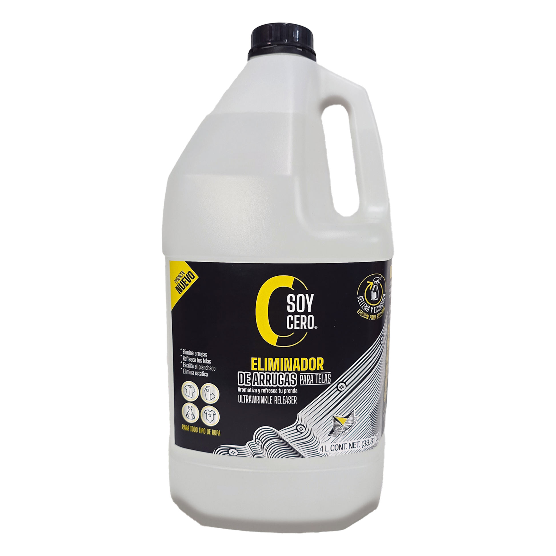 arrugas - Eliminador de arrugas para telas, sin usar plancha para cualquier tela, Versión 4L para rellenar (no incluye atomizador)