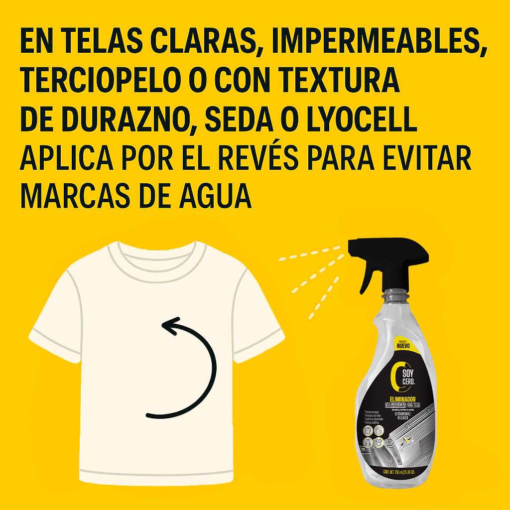 Consérvese en un lugar fresco y ventilado, evite el contacto con los ojos. No ingerir. Manténgase fuera del alcance de los niños. Soy Cero arrugas puede utilizarse en cualquier tejido, sin embargo, te sugerimos realizar una prueba antes en una parte poco visible de tu prenda, especialmente en prendas delicadas.